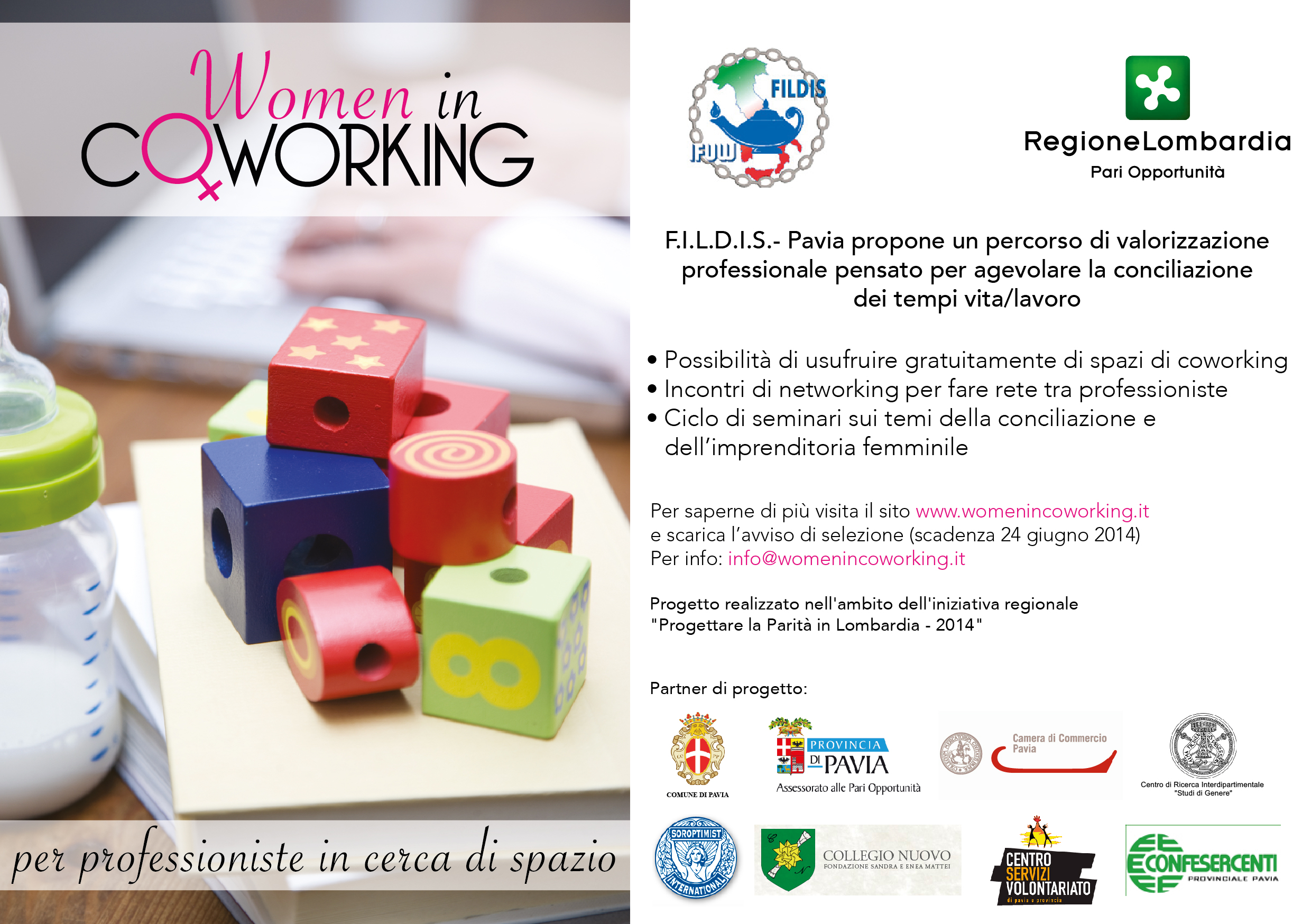 Per INFO: F.I.L.D.I.S.: -Luigia Favalli– tel.0382987399 - INFO@WOMENINCOWORKING.IT